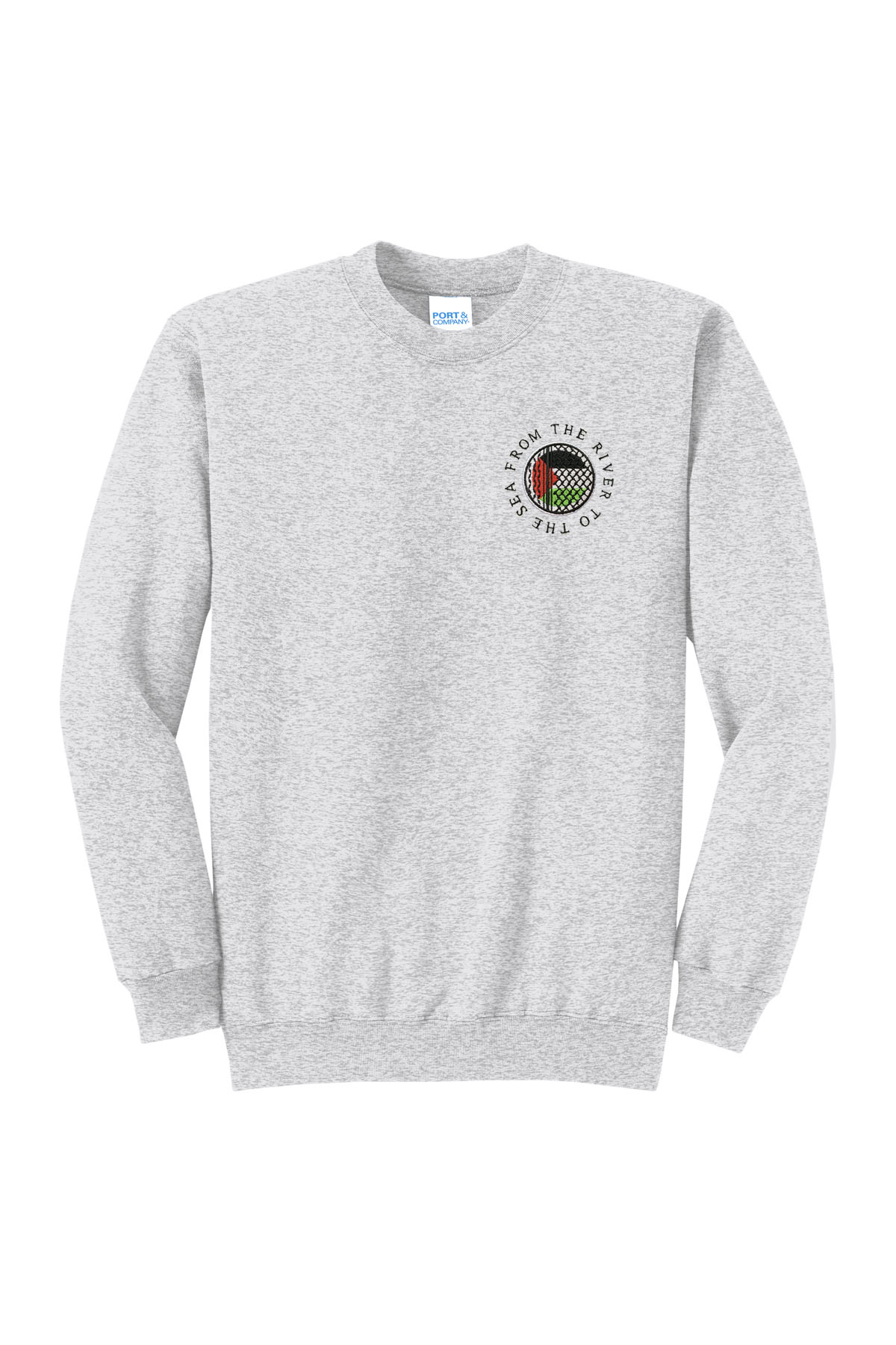From the River to the Sea Ash Grey Embroidered Crewneck